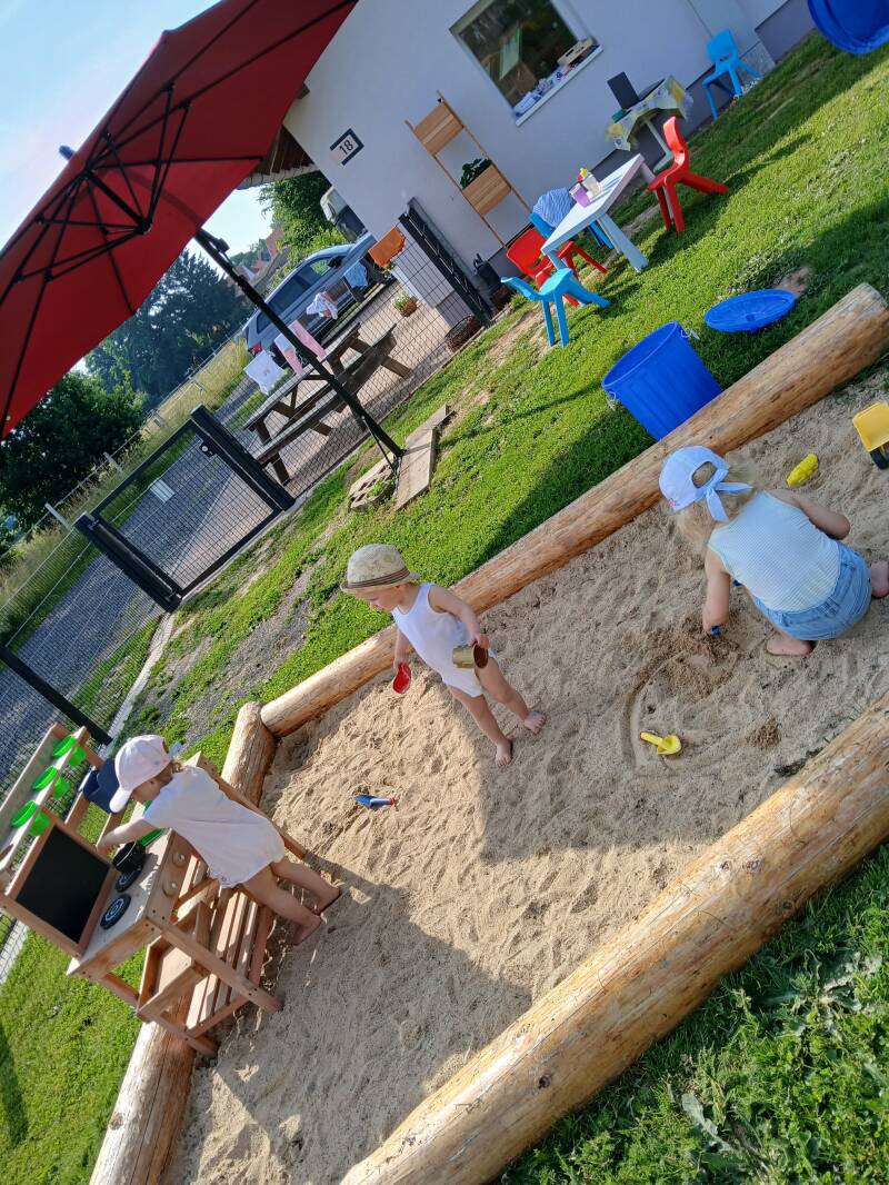 Neben dem Ernten und Verarbeiten haben wir auch das schöne Wetter genutzt und einen neuen Spielort erkundet: den Wasserspielplatz in Neustadt. Zusammen mit der Kindertagespflege „Wegbegleiter“ erlebten wir dort einen spannenden Tag. Wir lernten die anderen Kinder und eine weitere Tagesmutter kennen. Solche Begegnungen fördern nicht nur unsere soziale Entwicklung, sondern stärken auch die positive Vernetzung der Tagespflege untereinander.