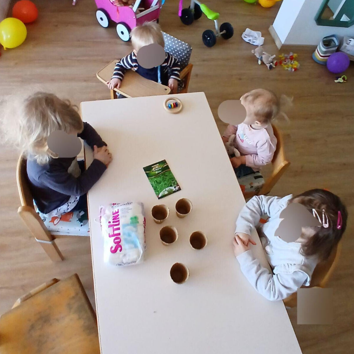 Um den Frühling und die Osterstimmung in unseren Gruppenraum zu locken, haben wir gemeinsam Kresse gesät und ihr beim wachsen zugesehen. Am Ende habe wir sie auch bei unserem Frühstück mit Linsenwaffeln gegessen.